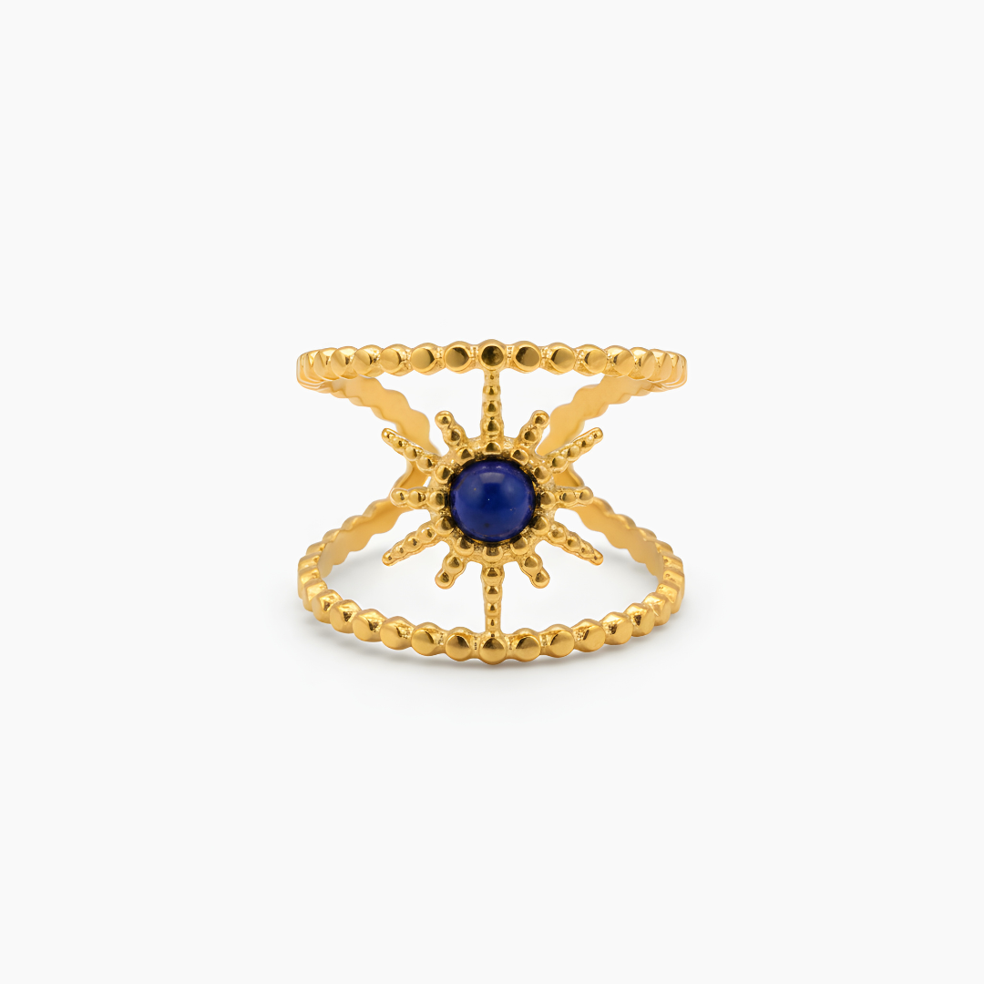 Anillo Intuición – Lapislázuli es un símbolo de sabiduría interior y conexión espiritual. Desde la antigüedad, el lapislázuli ha sido considerado la piedra de la intuición, la verdad y la claridad mental, ayudando a abrir la mente y fortalecer la conexión con la propia voz interior.