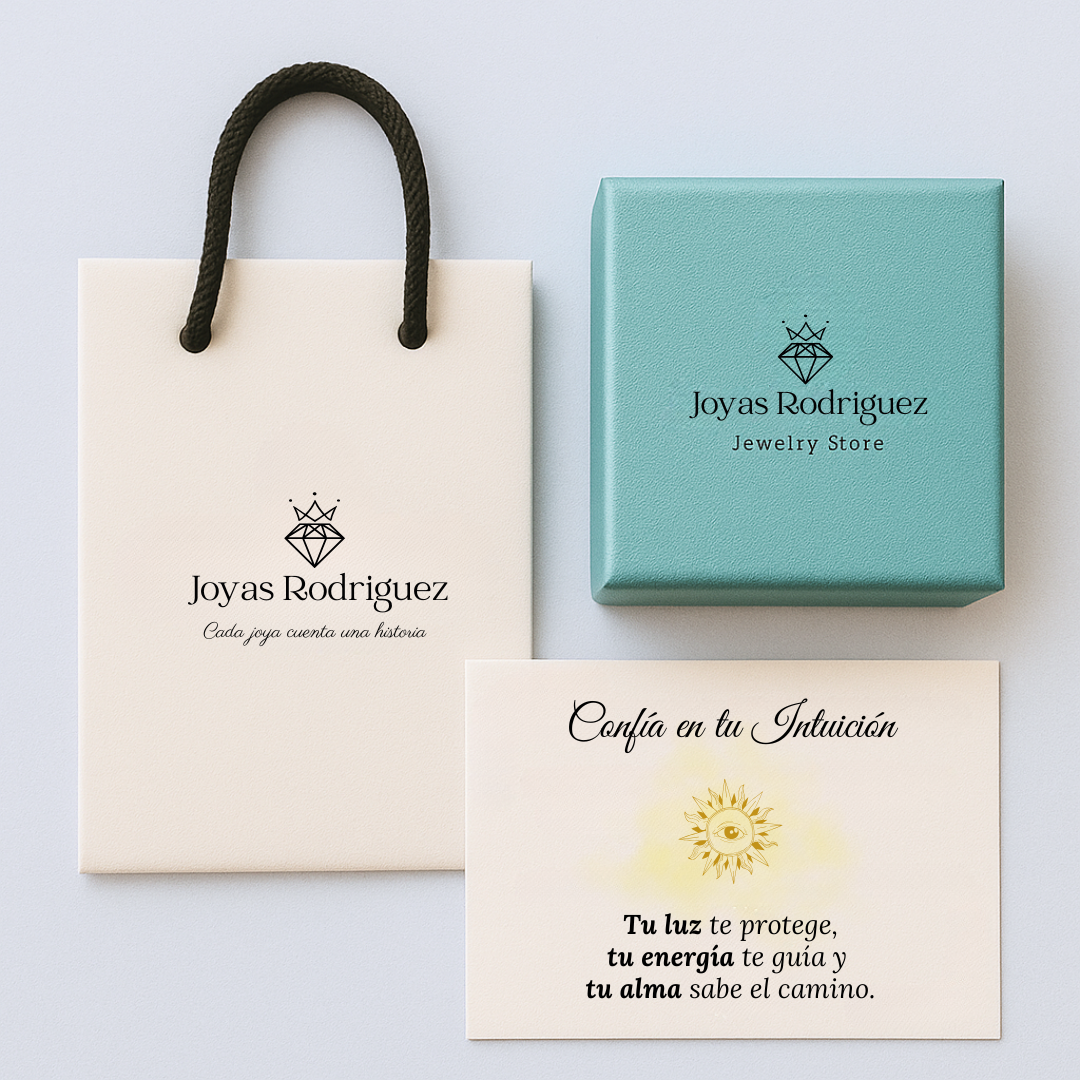 Cada joya incluye su tarjeta con mensaje y su cajita de regalo, cuidadosamente empaquetadas y listas para sorprender.