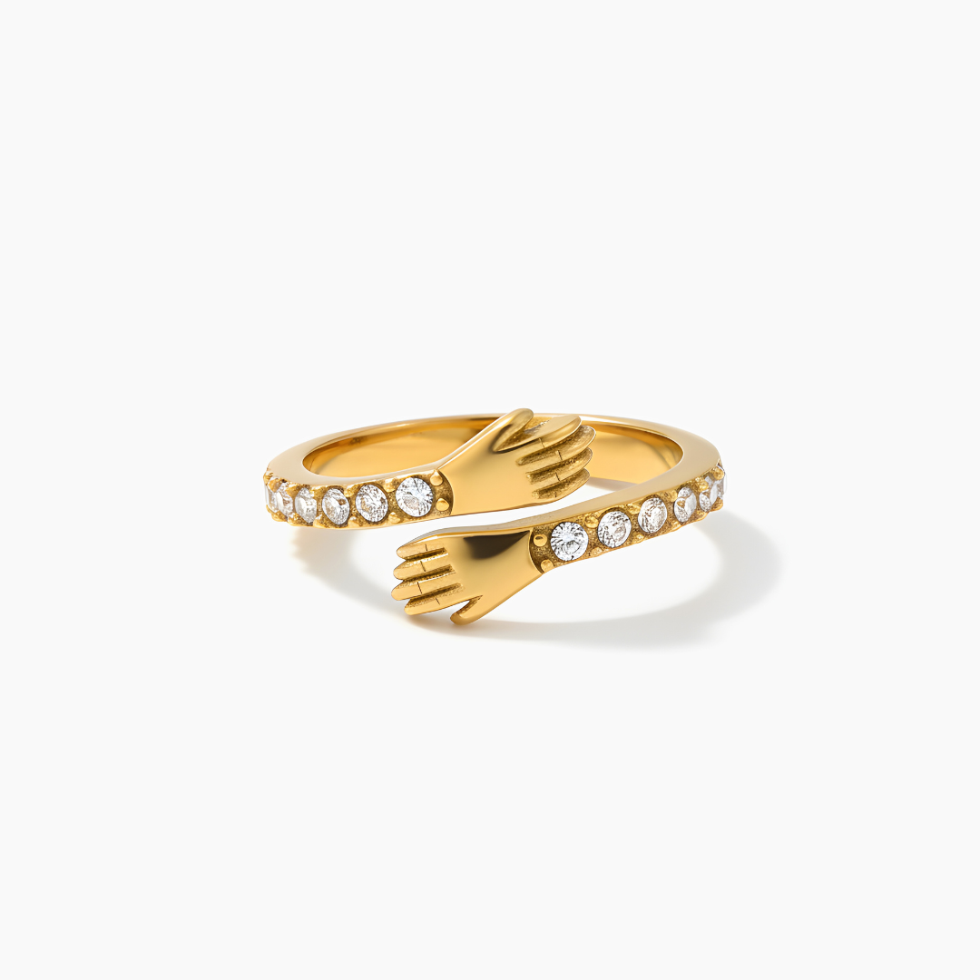 Este anillo simboliza un abrazo eterno, de esos que reconfortan el alma y nos recuerdan que el amor verdadero no tiene distancia. Su diseño envuelve el dedo con delicadeza, representando esos brazos que te sostienen incluso cuando no están físicamente cerca.