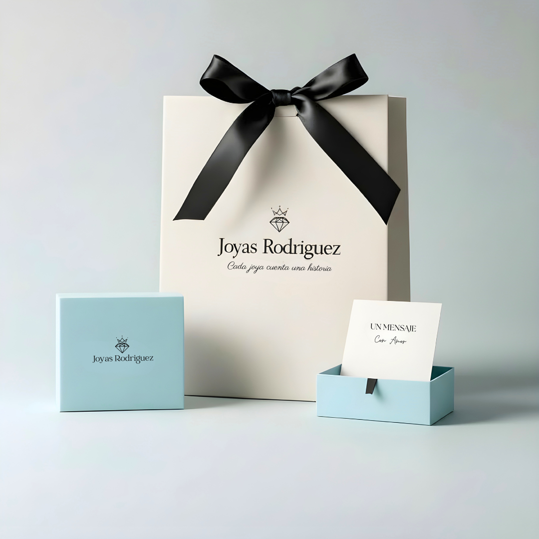 Cada joya incluye su tarjeta con mensaje y su cajita de regalo, cuidadosamente empaquetadas y listas para sorprender.