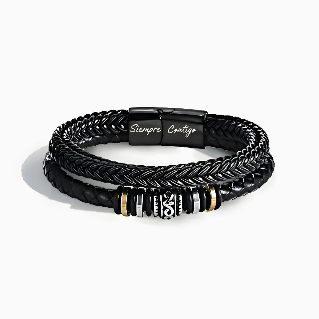 MENSAJE DE LA TARJETA Siempre contigo, Papá Tu amor y tu guía siempre han sido mi refugio. Este brazalete es solo un pequeño símbolo de lo mucho que significas para mí. No importa dónde esté, siempre te llevo conmigo.