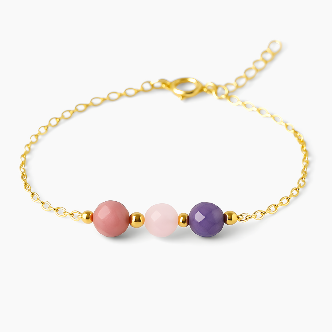 La Pulsera Mamá Primeriza ha sido creada para acompañarte en cada paso de esta nueva y maravillosa aventura. Confeccionada con Rodonita, Cuarzo Rosa y Amatista, sus energías se combinan para ofrecerte equilibrio emocional, amor incondicional y paz interior.