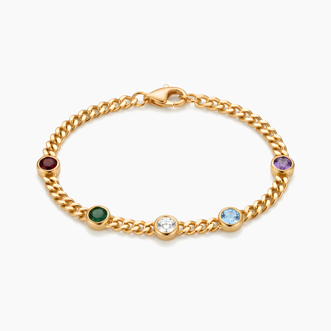 La Pulsera Tesoro de Mamá está diseñada para representar aquello que más atesora: sus hijos. Puedes personalizarla con piedras de nacimiento, convirtiéndola en una pieza especial que guarda en cada detalle un pedacito de su corazón.