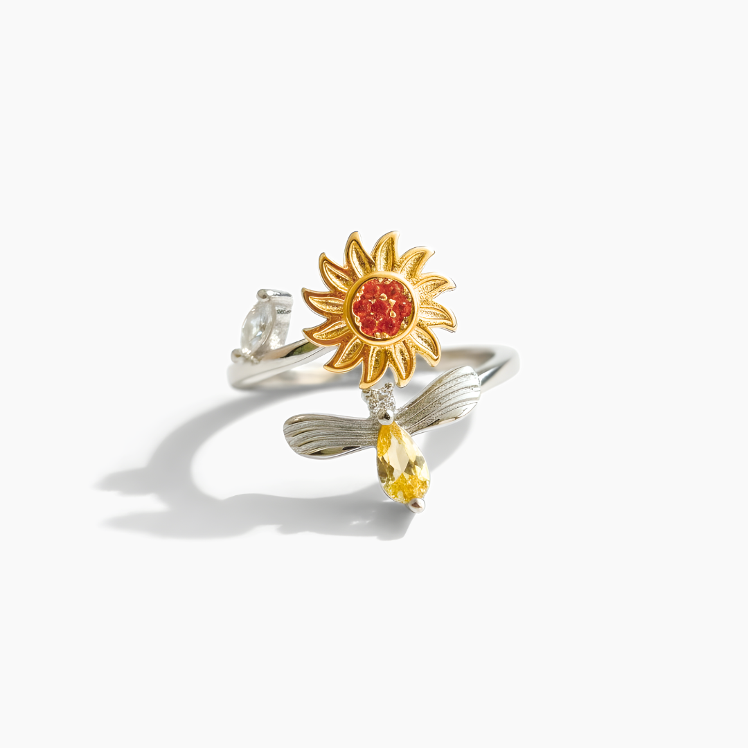 Llevar una joya con el símbolo del girasol proporciona a su dueño poder y protección contra las vibraciones negativas o la mala suerte. Gracias a su diseño ergonómico, este anillo puede girar suavemente, aliviando así el estrés sin dejar de ser fino y elegante.
