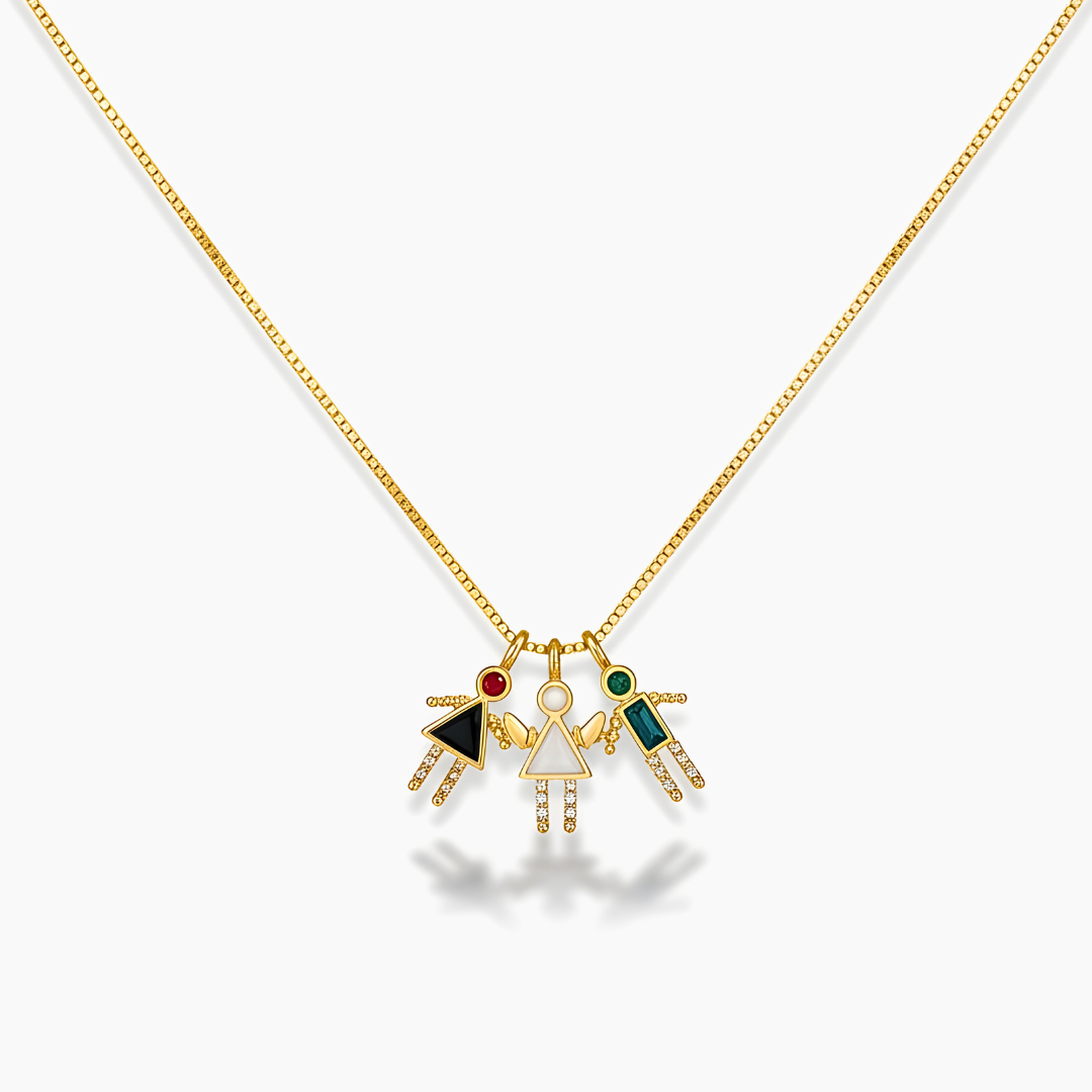 El Collar Amor de Mamá se personaliza con la silueta de tus pequeños: niño, niña o ambos. Cada dije representa a quien transformó tu vida para siempre: ese amor que te acompaña en cada etapa y te recuerda lo que realmente importa. Perfecto para usar a diario o para regalar en un momento especial. Una joya que guarda lo más valioso: tus hijos.