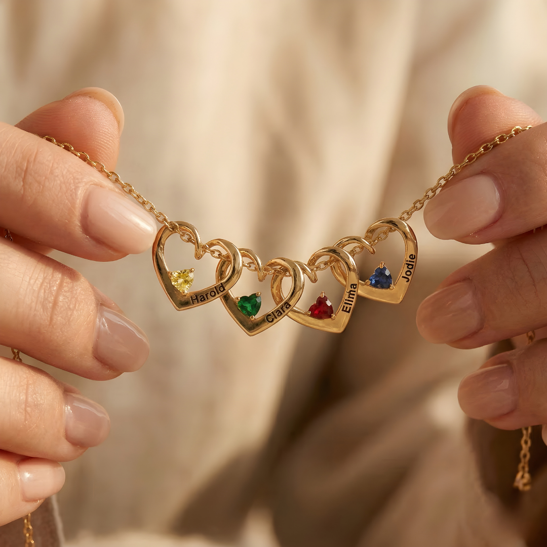 Personalízalo con hasta 4 piedras de nacimiento: cada una de ellas, representa un ser querido y el amor especial os une.