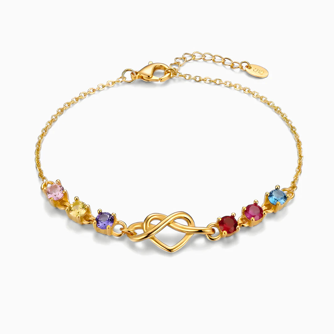 La Pulsera Lazos Eternos es más que una joya: es un homenaje a quien lo da todo por su familia. Personalízala con hasta 6 piedras de nacimiento, cada una representando a un ser amado. Un diseño delicado con un símbolo de infinito que celebra el amor que nunca se rompe. Ideal para regalar a mamá o abuela, y recordarle cuánto significa para todos.