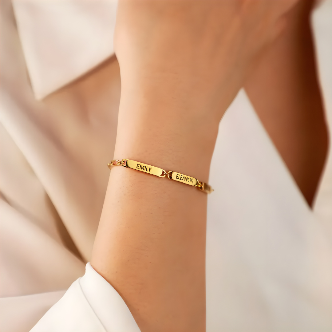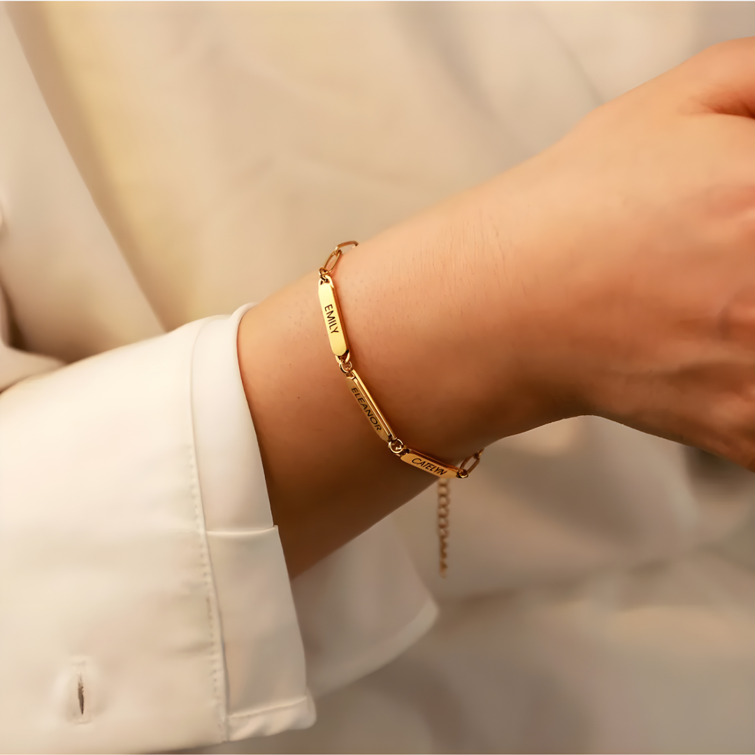 Una joya que habla de ti y de quienes te rodean. Personaliza esta pulsera con hasta 3 nombres importantes en tu vida y llévalos siempre cerca.
