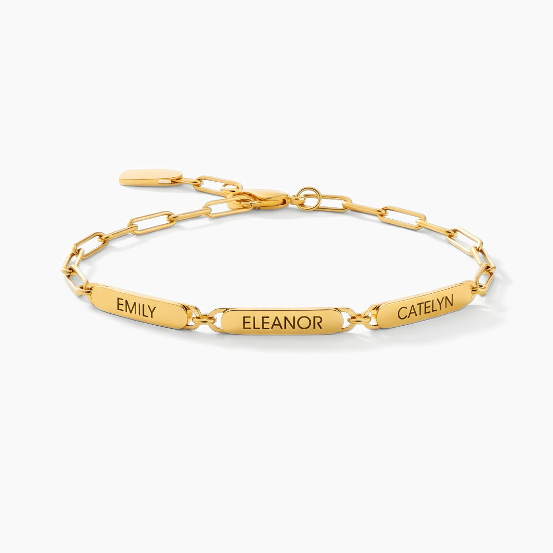 Personaliza esta pulsera con hasta 3 nombres importantes en tu vida y llévalos siempre cerca.